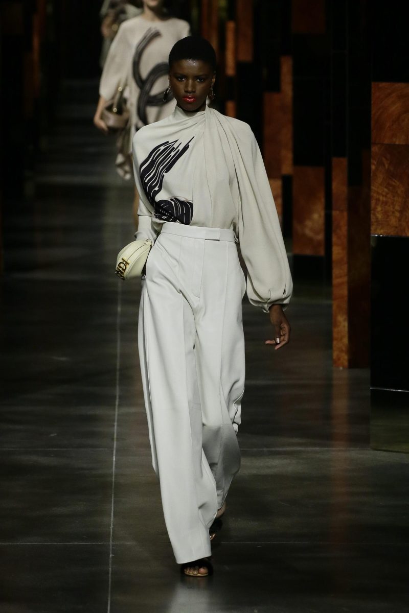 Scovato negli archivi della Maison Fendi, un logo disegnato a mano dal visionario illustratore di moda Antonio Lopez ha offerto il punto di partenza per la collezione primavera estate 2022, diretta da Kim Jones al suo secondo ready-to-wear da direttore artistico.