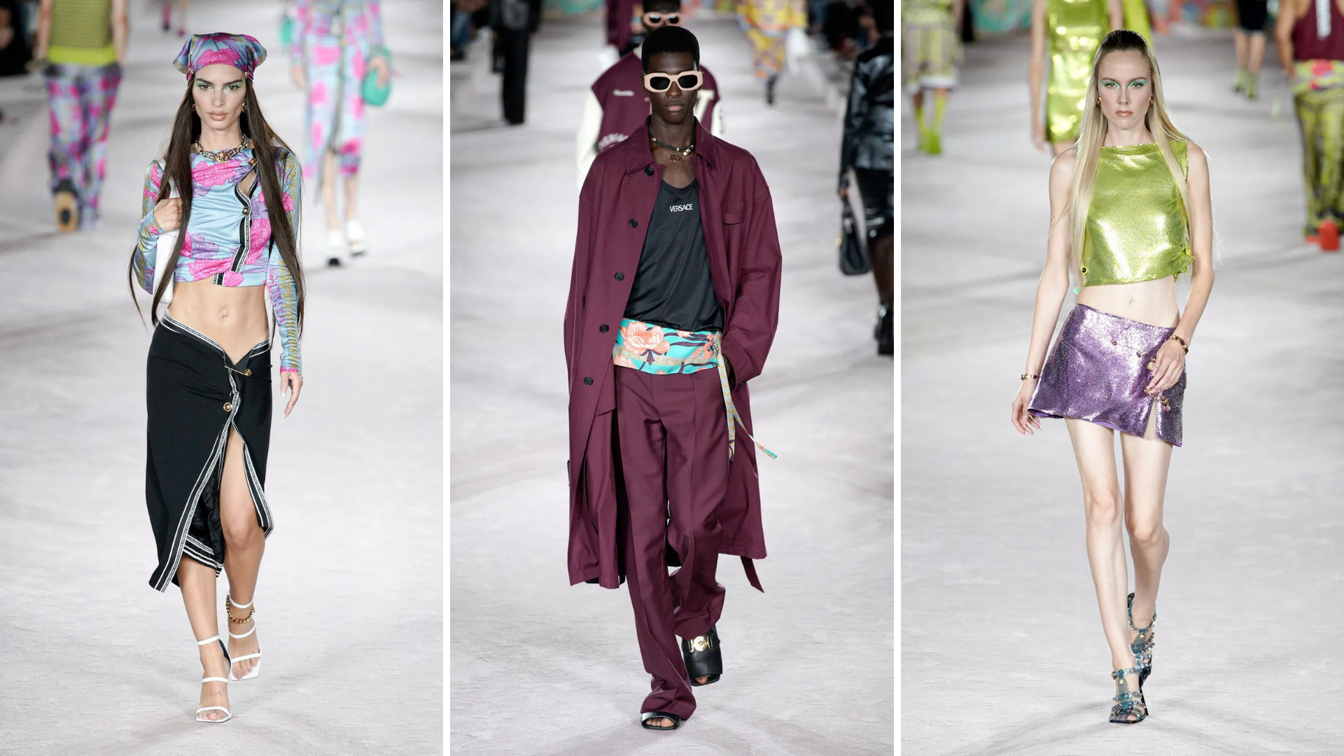 Tra le stampe domina «La Greca», motivo iconico del brand, a cui si uniscono il pattern «Royal Rebellion» con corone e stemmi declinati in tinte forti, «Banquet Aftermath» caratterizzato da immagini dei servizi da tavola della collezione Versace Home e «Acid Bouquet», una primavera floreale in toni acidi. Ancora una volta Versace non dimentica di stupire. E non finisci qui. Si vocifera di una collaborazione tra Dontella Versace e Silvia Venturi Fendi che andrà in scena questa domenica.