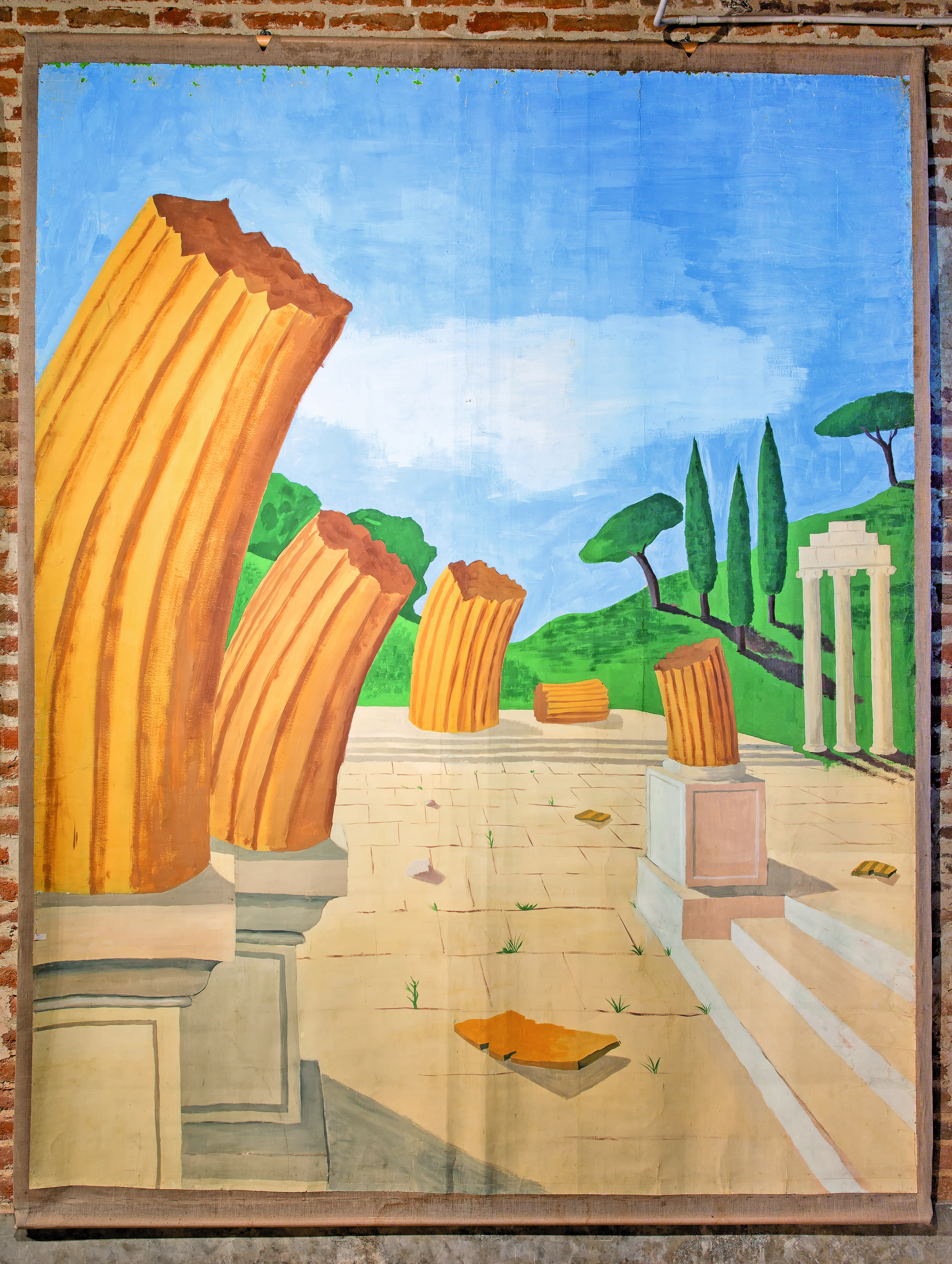 Pasta antica, 1970, pannello scenografico (tempera) (Marco Sacchi)