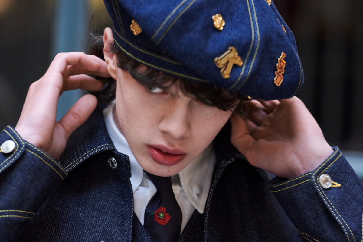 Il tailoring giapponese prende forma in incarnazioni ibride di abiti e salopette, completi gessati e in Principe di Galles deostruiti e reinterpretati in lane lavate, mentre cappotti in Harris Tweet rimandano agli anni Ottanta. E ancora bomber souvenir si ispirano a quelli storicamente commissionati in tessuti da kimono dalle forze d’occupazione americane in Giappone e capi in denim giapponese mostrano un perfetto equilibrio tra il grezzo e il molto raffinato. La grammatica degli archivi di Kenzo appare così filtrata dall’inconfondibile sensibilità artistica di Nigo.