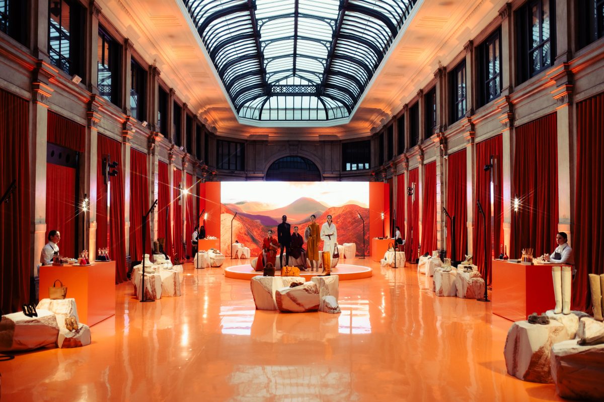 Santoni porta invece la poesia dei Monti Sibillini nel cuore di Milano, attraverso un’atmosfera di storia e meraviglia, dove tradizione e artigianalità intessono la trama del racconto per il prossimo autunno. I materiali sono soffici, preziosi come un tenero abbraccio, il camoscio candido e la nappa extra soft si intrecciano con dettagli in cashmere, lana e maglia, filati avvolgenti che enfatizzano la dolcezza del Winter mood. La palette cromatica esplora le sfumature invernali della natura: i fiori delicati che punteggiano le pendici delle montagne, il rosa delle prime luci dell’alba e il bianco delle stelle alpine si mescolano con le tonalità del territorio, il bruciato, il terra e l’inconfondibile arancio Santoni.