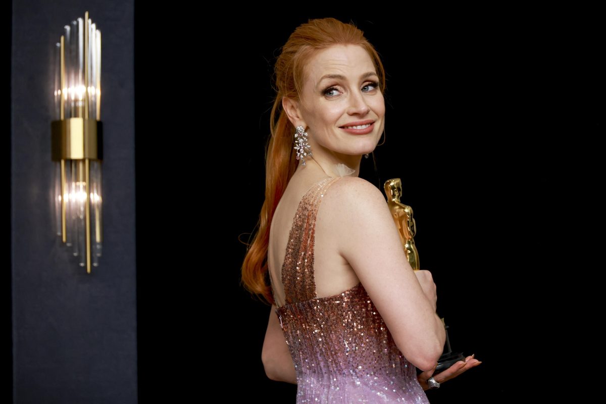 La vincitrice della statuetta come «Miglior attrice protagonista» Jessica Chastain ha indossato un abito Gucci (abbinato a scarpe Stuart Weitzman) ricoperto di paillettes che passavano dal color bronzo del corpetto a un incantevole viola. Hanno invece scelto Giorgio Armani, Nicole Kidman – in un abito senza spalline azzurro polvere; Saniyya Sidney; i nominati Benedict Cumberbatch, Adam McKay e Nyle DiMarco e i presentatori Robert De Niro, Samuel L. Jackson e Travis Barker (accompagnato dalla futura moglie Kourtney Kardashian in vintage Mugler).