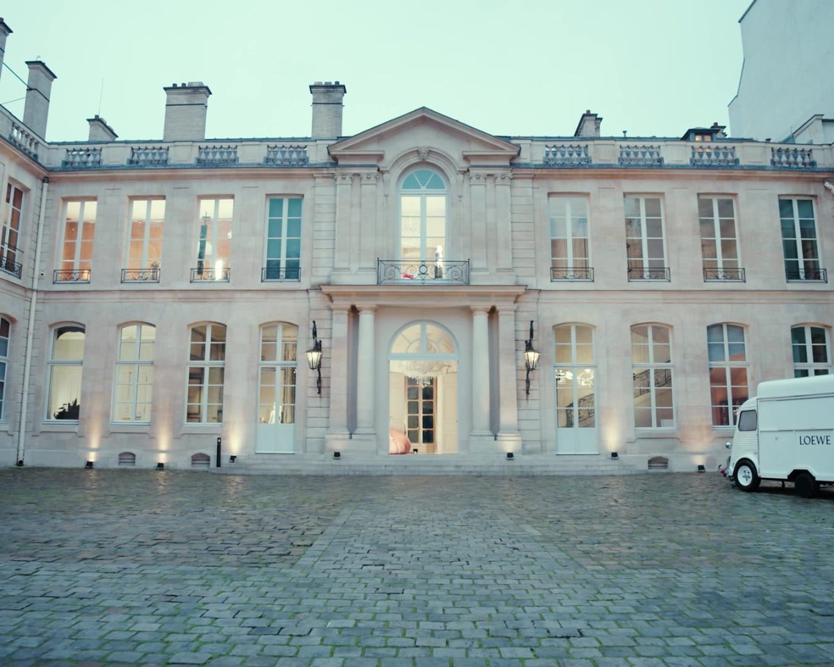 L’ambientazione, l’Hôtel de Maisons del XVIII secolo, si presta come un labirinto di suggestioni, articolato in 17 stanze tematiche. Qui, la collezione si intreccia con l’arte contemporanea, in un dialogo visivo che riporta in scena elementi iconici del passato di Loewe: la zucca monumentale di Anthea Hamilton, le ceramiche di Zizipho Poswa, e il fiore iperrealista di Yoshihiro Suda, che sembrano sussurrare connessioni sottili tra naturale e artificiale, tra realtà e astrazione.