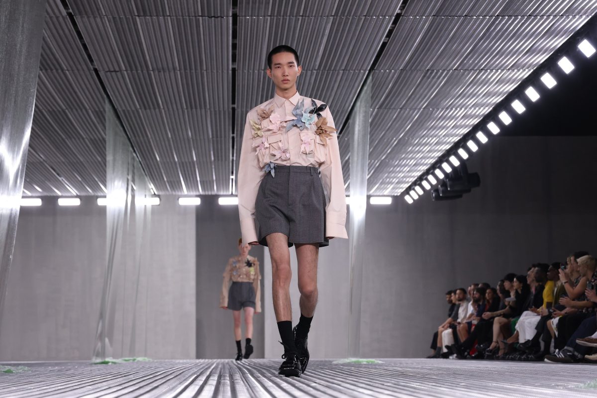 Questo concetto vale per la collezione Prada primavera/estate 2024 mandata sulla passserella di metallo da Miuccia Prada e Raf Simons: apparentemente sfilano abiti maschili nei classici colori del grigio, del nero, oppure camicie bianche abbinate a bermuda corti a metà coscia, in realtà, andando oltre l’apparenza del primo sguardo, emerge, una struttura architettonica soprattutto dell’abito e della camicia, che rimanda non solo a una nuova grammatica della vestibilità ma anche a una nuova concezione della mascolinità. Più gentile e pacificata.