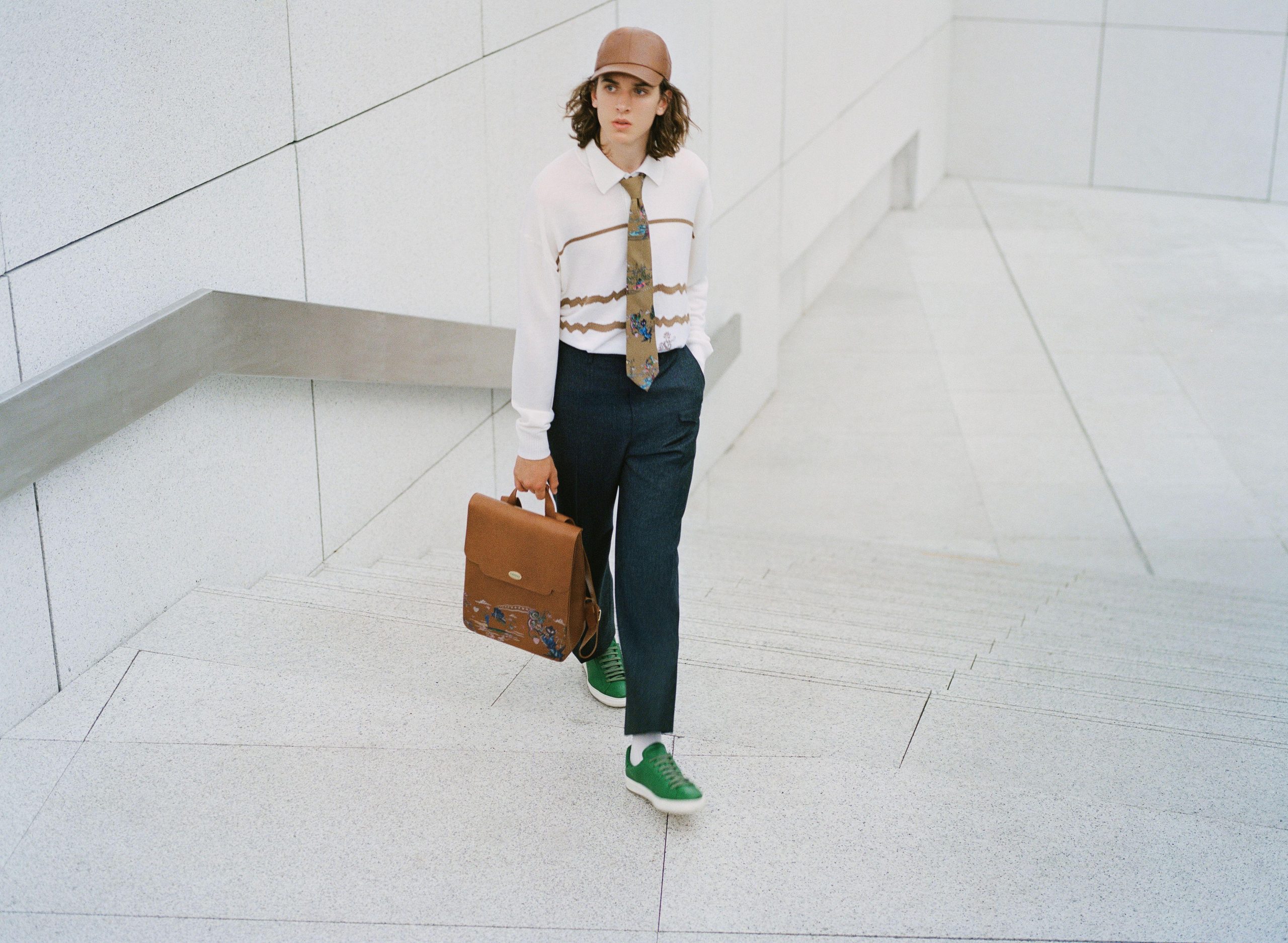 Bomber e maxi felpe offrono allo streetstyle di entrare in collezione in maniera più dirompente, insieme a pantaloni in denim stampato con motivi cashmere e agli accessori come sneaker patchwork allacciate con stringhe in colori fluo, zaini e borse a tracolla multidecorati.