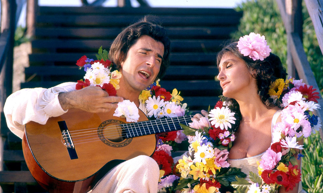 Lo sceneggiato tv “I promessi sposi”: il romanzo di Manzoni è re-interpretato dal trio Solenghi, Marchesini e Lopez, 1990. Nella foto Tullio Solenghi (nei panni di Renzo) e Anna Marchesini (Lucia).