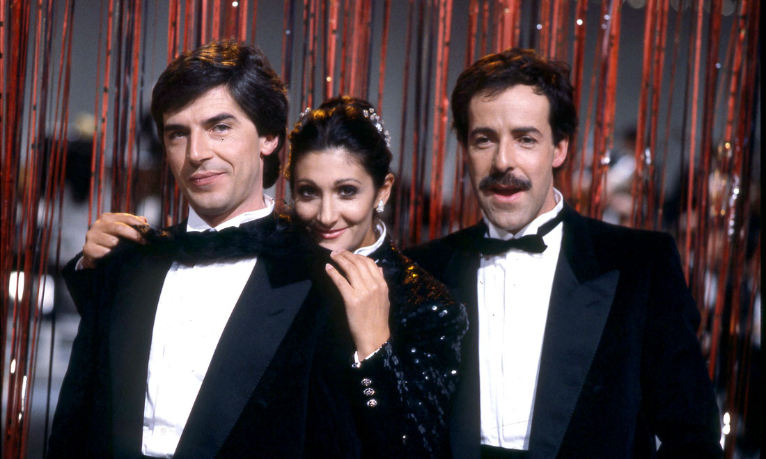Il trio Massimo Lopez, Tullio Solenghi e Anna Marchesini nel Festival di Sanremo 1989.