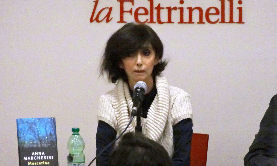 Anna Marchesini alla presentazione del suo libro “Moscerine”, alla libreria Feltrinelli di Roma.