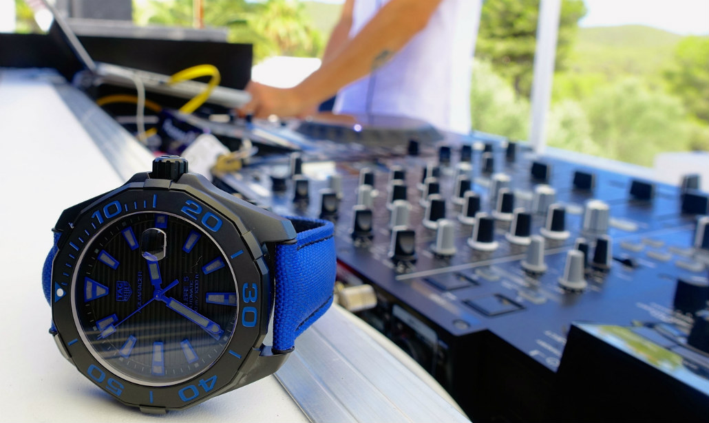 La teoria è inappuntabile logica svizzera: «Molti sport non hanno senso quando il tempo non li scandisce. Lo stesso succede con la musica: puro ritmo» argomenta Jean-Claude Biver, ceo di Tag Heuer. La pratica, invece, è una fusione dei due universi, note e agonismo: per presentare il nuovo orologio Aquaracer 300M Black Titanium, la maison ha convocato una coppia d’icone della dance, Martin Garrix e David Guetta, otto leggende della Liga spagnola, da Fernando Sanz a Michel Salgado, per farli sfidare con il pallone tra i piedi. Cinque contro cinque, deejay barricati in porta (per la cronaca, l’ha spuntata il team Guetta ai rigori). Non in uno stadio, ma in una villa a Ibiza con patio e piscina, campo verdissimo e vista azzurro mare. A seguire, dj set scatenato di Garrix con il sottofondo del tramonto.