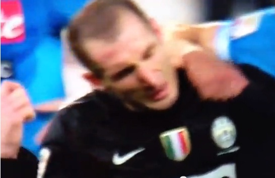 26′ MINUTO – Chiellini a terra dopo una leggera sbracciata di Behrami che lo colpisce al volto. Qualche protesta bianconera, poi Behrami si spiega con Buffon che con il pollice alto gli fa il segno “tutto ok”. Era involontario.
