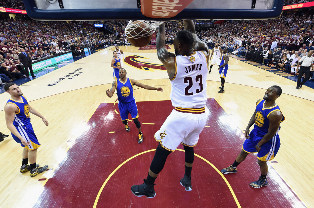 Se LeBron è il condottiero come da copione, questa volta gli altri dello starting-five lo seguono insomma alla perfezione, mentre dall’altra parte il top-scorer finisce per essere Harrison Barnes (18) in una serata in cui gli “Splash Brothers” sbattono tanto contro la difesa di Cleveland quanto contro i ferri dei canestri: 19 punti per Stephen Curry con 6/13 dal campo, 10 punti per Klay Thompson con 4 tiri a bersaglio su 13 tentati. Pessima poi la prova di Draymond Green, con soli 6 punti in quasi 36′ di impiego.