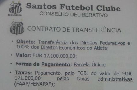 Insomma proprio un bel colpo, non c’è che dire. La cifra è scritta nero su bianco sul contratto depositato presso la sede del Santos. 17,1 milioni di euro che saranno ripartiti tra il club (9.350.000 euro), DIS e Teisa. Non un centesimo in più tasse escluse se non attraverso una serie di bonus comunque contenuti: 2 milioni se Neymar diventerà uno dei tre giocatori più forti al mondo, e gli incassi di due amichevoli che potranno essere sostituiti da una penale da 4,5 milioni di euro.