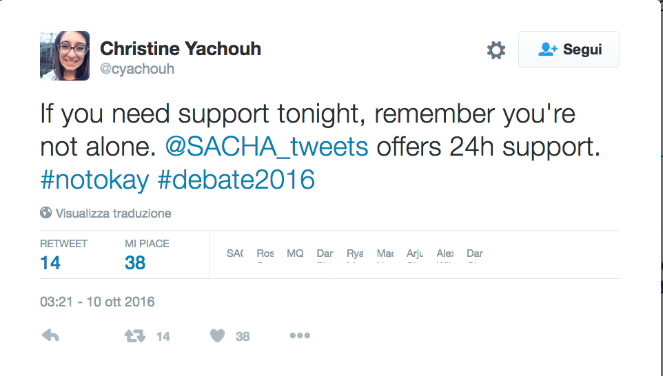 La Oxford intervistata poi da Washington Post ha dichiarato: “Certo, sapevo che l’atteggiamento arrogante e sessualmente aggressivo mostrato dal candidato alla Casa Bianca nel video di 10 anni prima, era qualcosa che ci riguardava tutte. L’altra faccia di un’esperienza che agli uomini fa sorridere e a noi fa orrore.