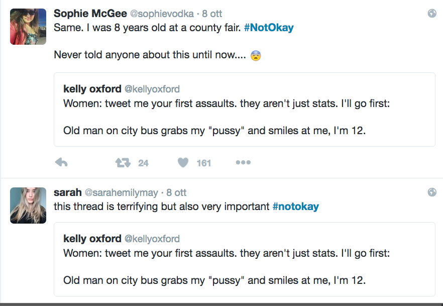 Da quando Kelly Oxford, giornalista e blogger del New York Times ha tuonato su Twitter che la cultura dello stupro, del machismo imperante e dell’abuso di genere perpretato ad ogni latitudine da parte degli uomini ai danni delle donne del pianeta “Non è ok”, il suo Hashtag #NotOkay è stato moltiplicato milioni di volte.