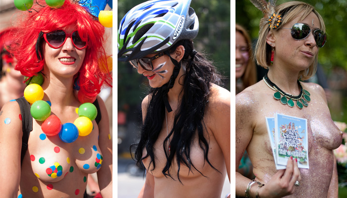 In giro per il mondo capita che incrociare persone che girano nude in bicicletta. Di solito si tratta di manifestazioni per sostenere politiche attente all’ecologia, oppure per invitare gli automobilisti a una guida responsabile, che tenga conto di chi si muove su due ruote. In queste occasioni, è facile osservare un esercito di fotografi intenti a immortalare le nudità così da diffonderle per il Web. Negli scatti finisce un po’ di tutto: maschi e femmine, anziani e giovani, belli e meno belli. Ecco un assaggio, smaccatamente dedicato alle ragazze più carine.