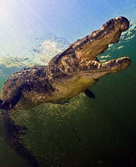 – imparare a interpretare il comportamento dei coccodrilli e avvicinarsi solo a quelli che sembrano più a loro agio con i nuotatori.