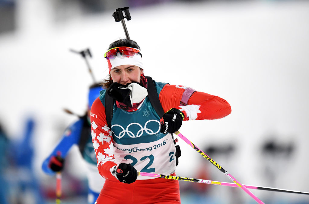 La rumena Eva Tofalvi partecipa alla manifestazione femminile di biathlon da 7,5 km di sprint – 10 febbraio 2018