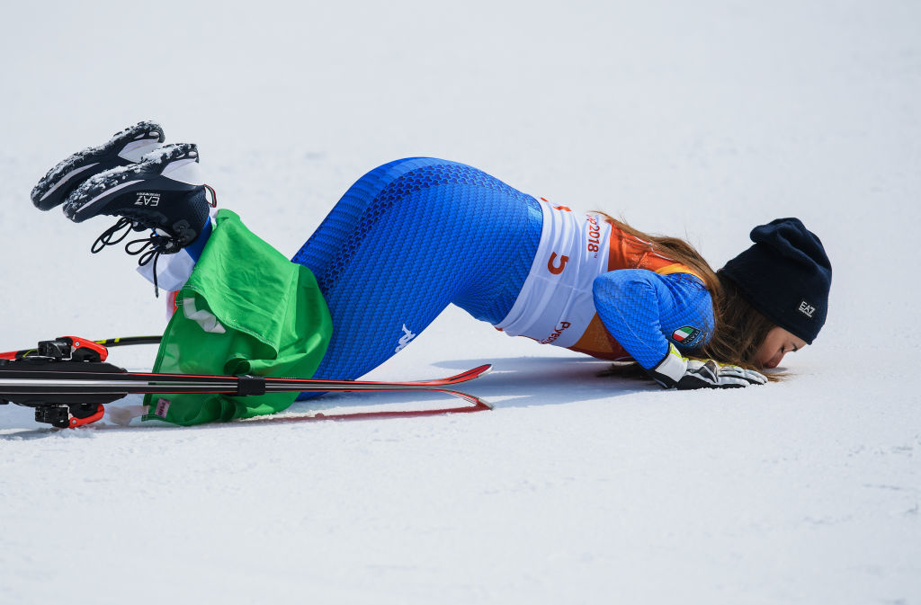 L’azzurra Michela Moioli festeggia l’oro nello snowboard femminile alle Olimpiadi invernali – 16 febbraio 2018