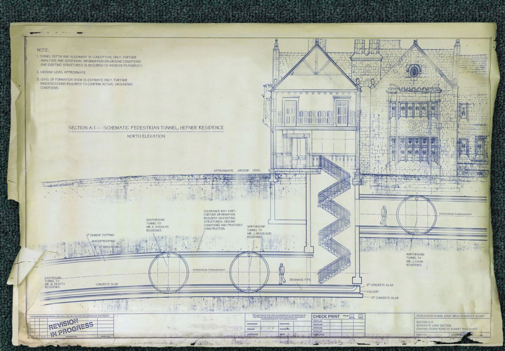 Cunicoli e gallerie sotterranee per unire la Playboy Mansion con le ville dei più importanti attori di Hollywood negli anni ’70. L’ingegnoso progetto di Hugh Hefner è stato trovato nell’archivio della rivista per adulti.