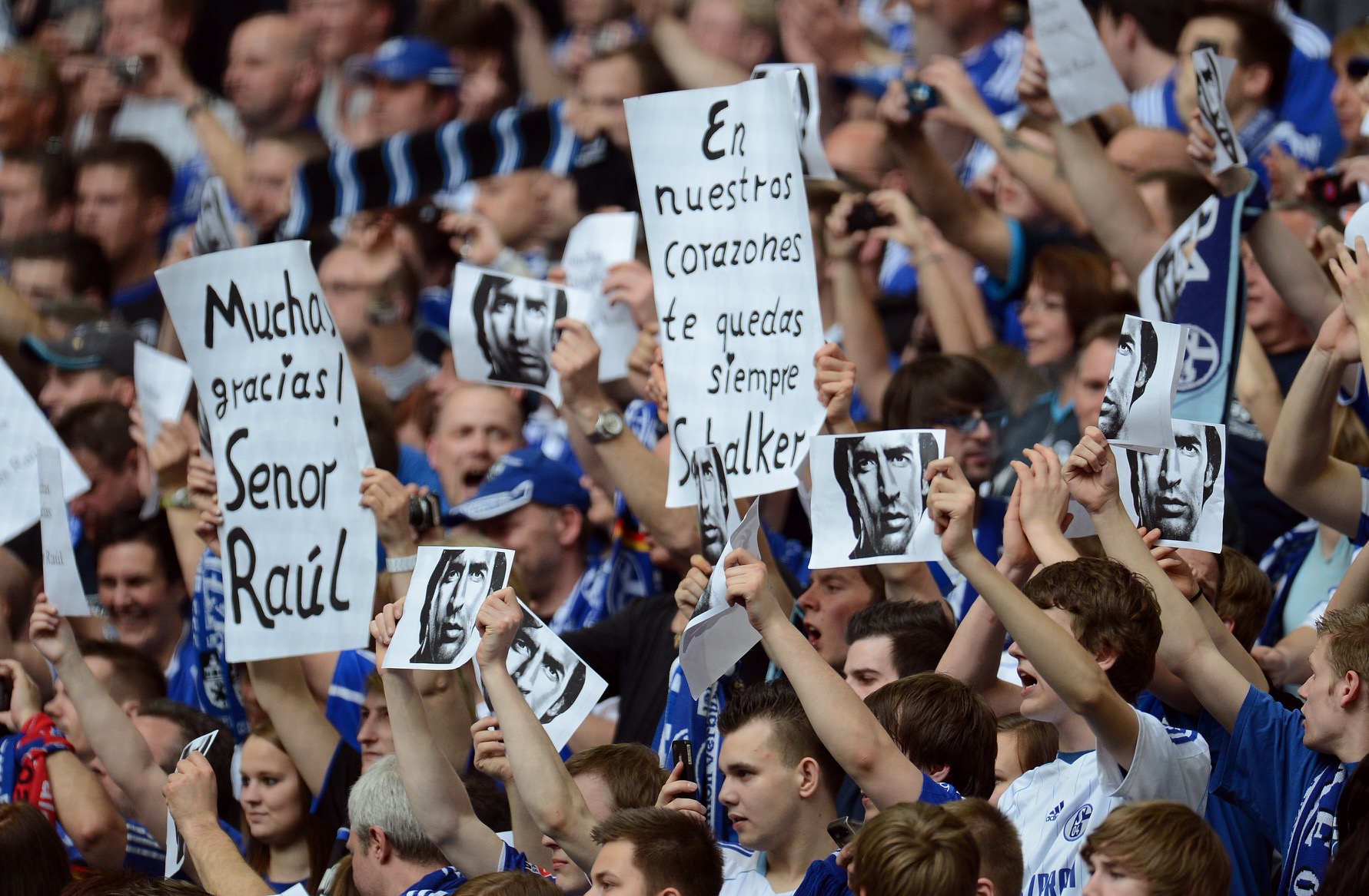 I tifosi dello Schalke 04 rendono omaggio a Raul. Lo spagnolo ha giocato in Germania dal 2010 al 2012 segnando 28 gol in 66 partite.
