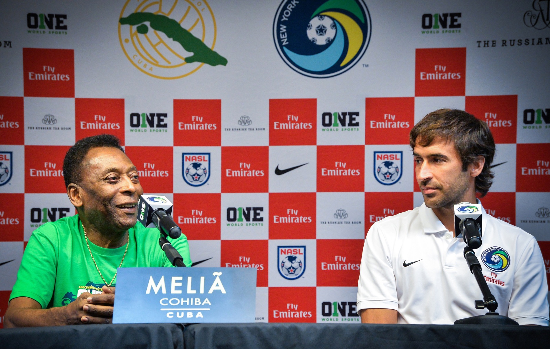 Pelè e Raul nel giorno della presentazione dello spagnolo ai New York Cosmos.
