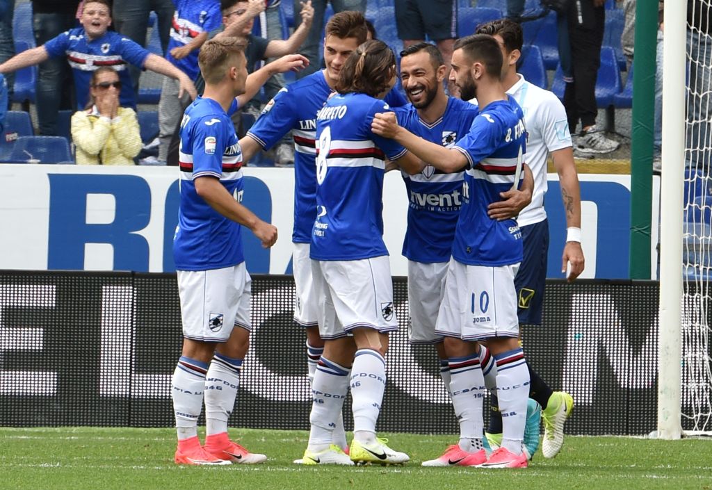 La festa blucerchiata dopo il vantaggio di Quagliarella – 14 maggio 2017
