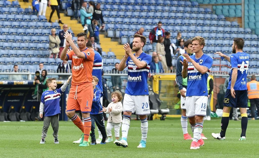 I giocatori blucerchiati salutano la gradinata Sud – 14 maggio 2017