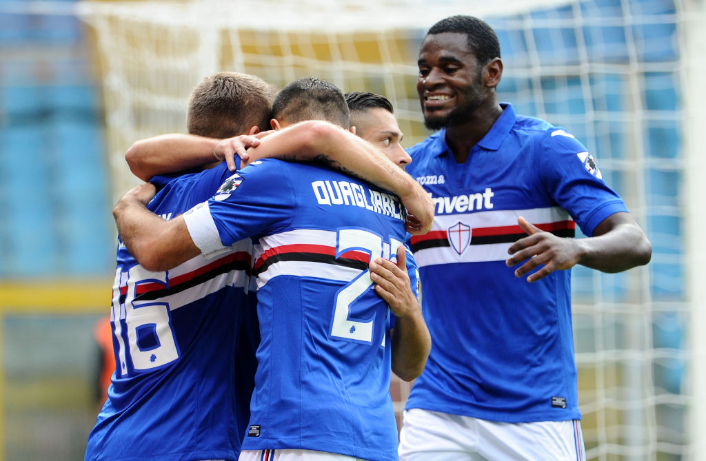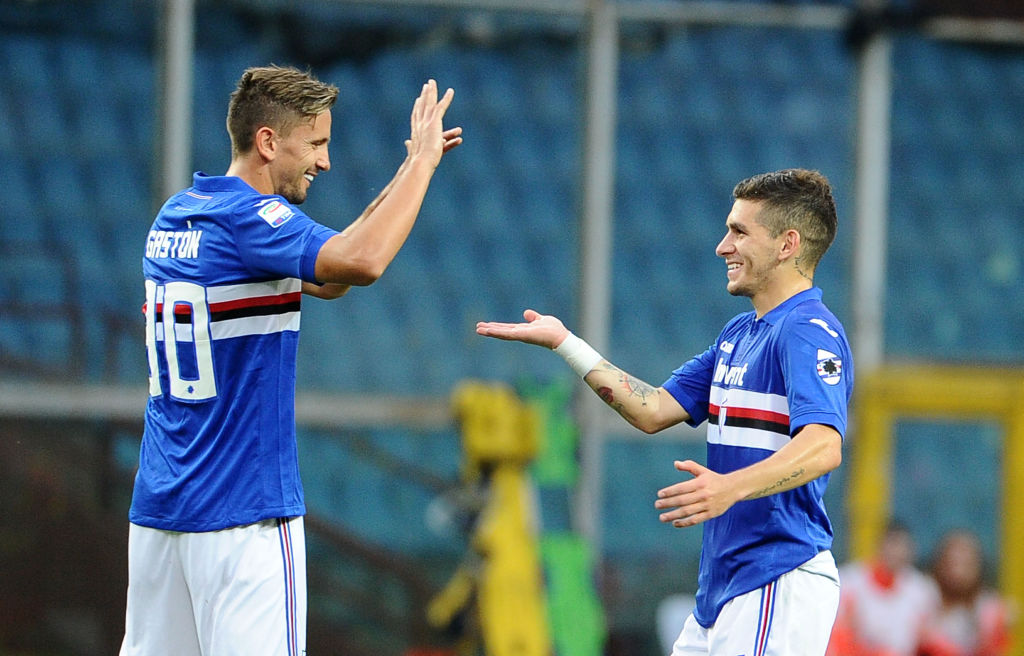 Fabio Quagliarella abbraccia Karol Linetty dopo il vantaggio blucerchiato – 29 ottobre 2017