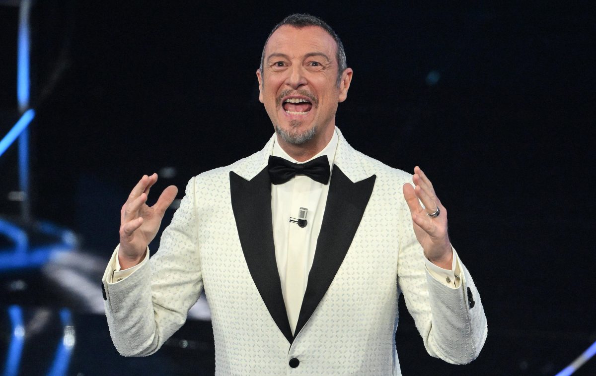 Amadeus entra sul palco di Sanremo come un calciatore, facendosi il segno della croce. Ed è subito Dio, Patria e Crochet.