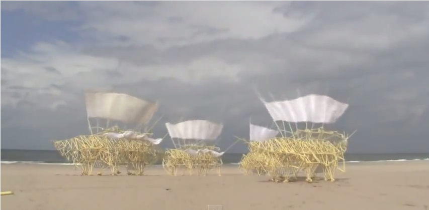 Difficile non restare a bocca aperta di fronte all’elegante danze di queste eteree sculture: l’opera si chiama “Strandbeest”, ovvero “Bestia da spiaggia”.