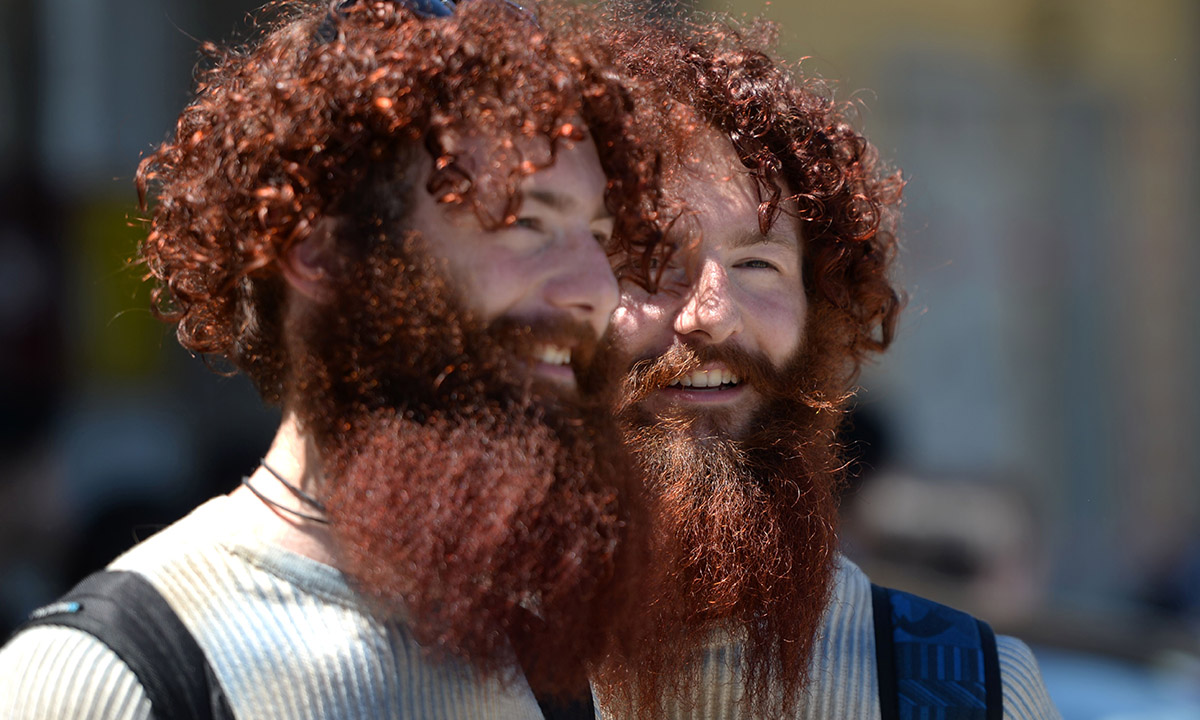 20 giugno 2016. I fratelli gemelli Fabrizio e Valerio Salvatori posano fuori dallo spazio che a Milano ha ospitato la sfilata Gucci.