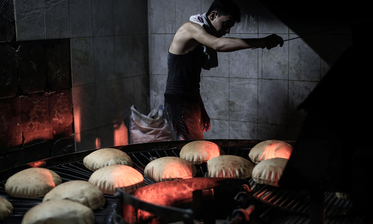 19 giugno 2016. Un uomo lavora in un panificio a Douma, città in mano ai ribelli a est di Damasco. Il pane sarà distribuito gratuitamente alla popolazione povera in occasione del Ramadan.