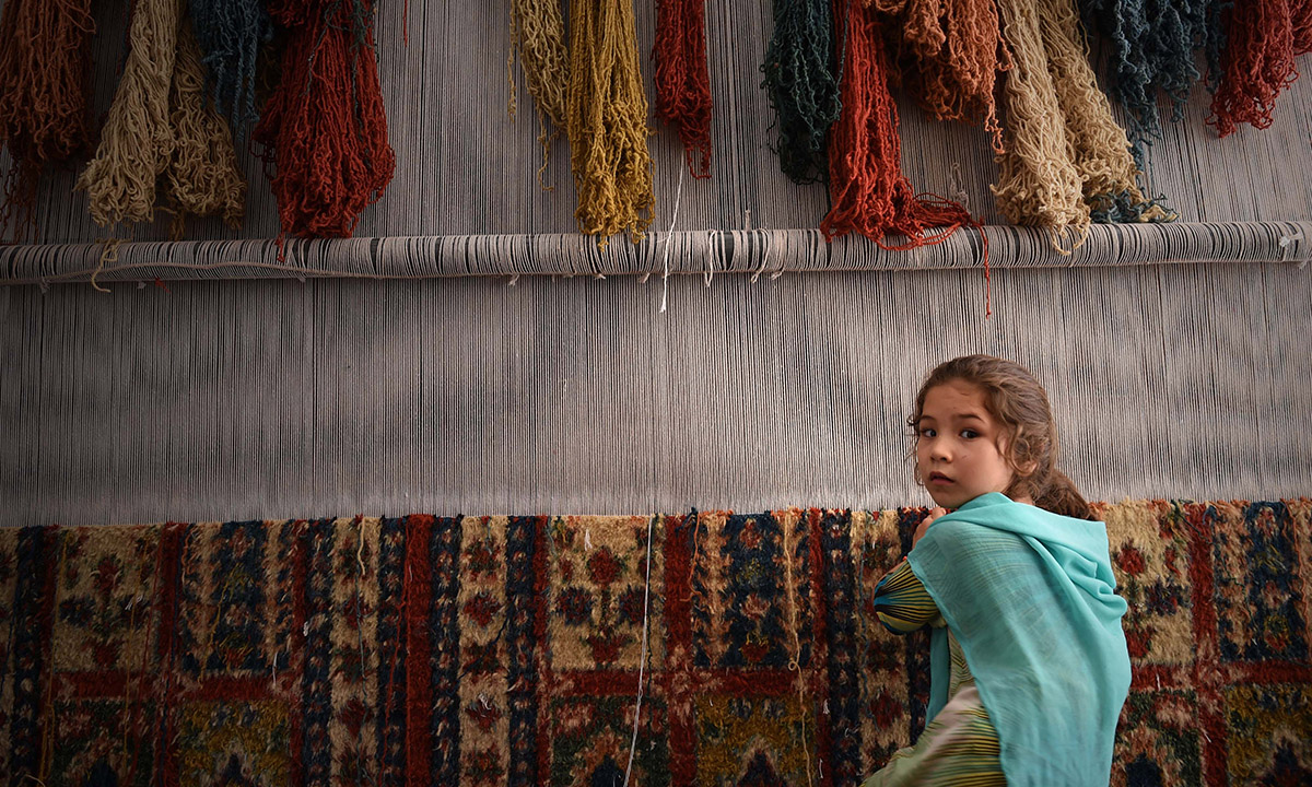 20 giugno 2016. Una giovane rifugiata afghana lavora alla creazione di un tappeto in un piccolo laboratorio a Peshawar, in Pakistan, nella Giornata mondiale dei rifugiati.