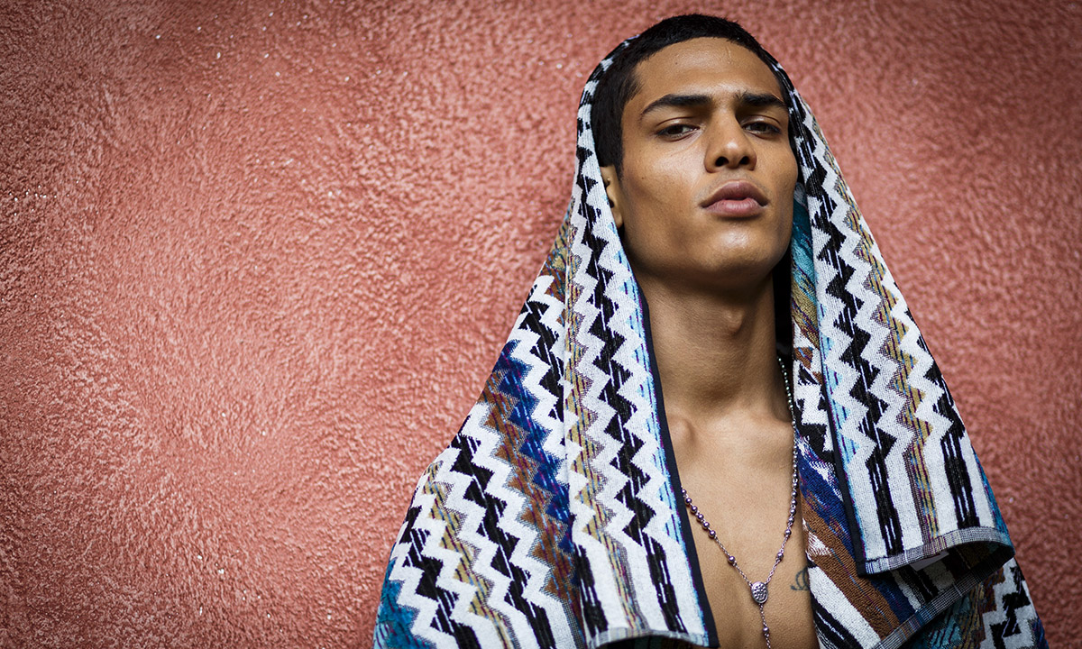 19 giugno 216. Un modello nel backstage della sfilata Missoni uomo nel corso della Milano Fashion Week Primavera/Estate 2017.