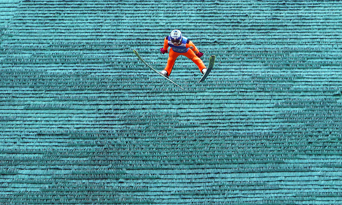 16 luglio 2016. Maciej Kot della Polonia vince nelle finali del Summer Grand Prix di salto con gli sci a Courchevel, Francia.