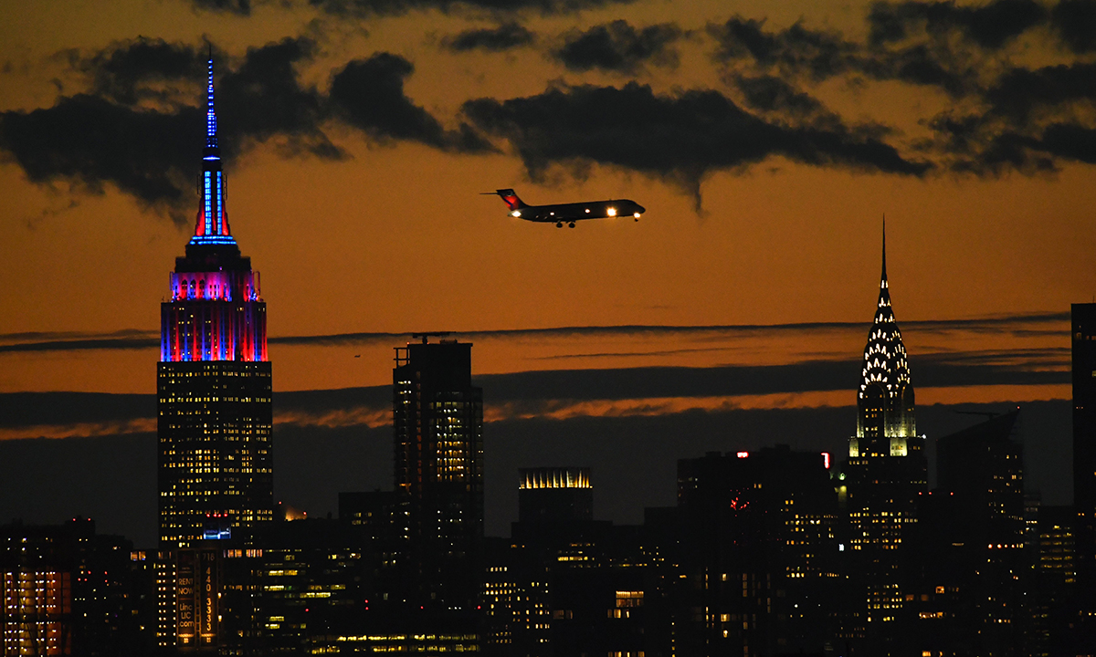 7 settembre 2016. I colori del FC Barcelona sull’Empire State Building, in onore dei 10 anni di partnership tra l’UNICEF e la squadra di calcio, fotografato dall’USTA Billie Jean King National Tennis Center di New York.