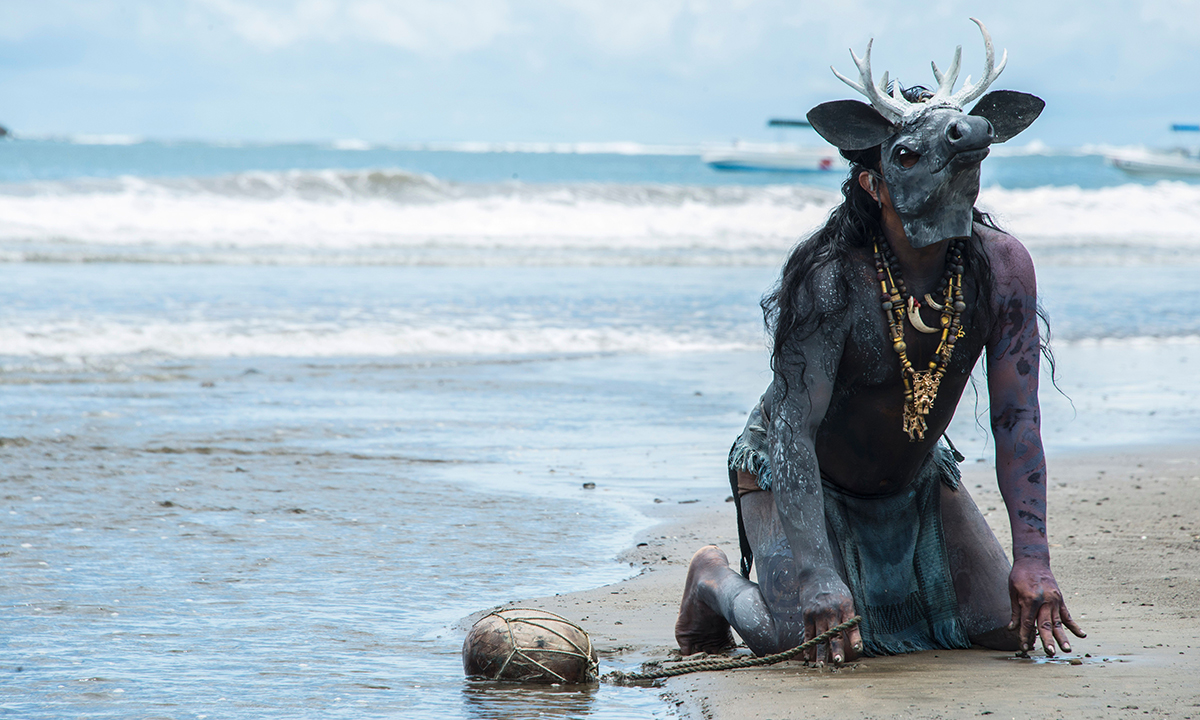 2 settembre 2016. Un artista si esibisce durante l’8° Festival annuale dei delfini e delle balene presso la spiaggia Bahia Ballena a Puntarenas, 230 km a sud ovest di San José, in in Costa Rica, dove da luglio a ottobre è possibile osservare le migrazioni dei cetacei.