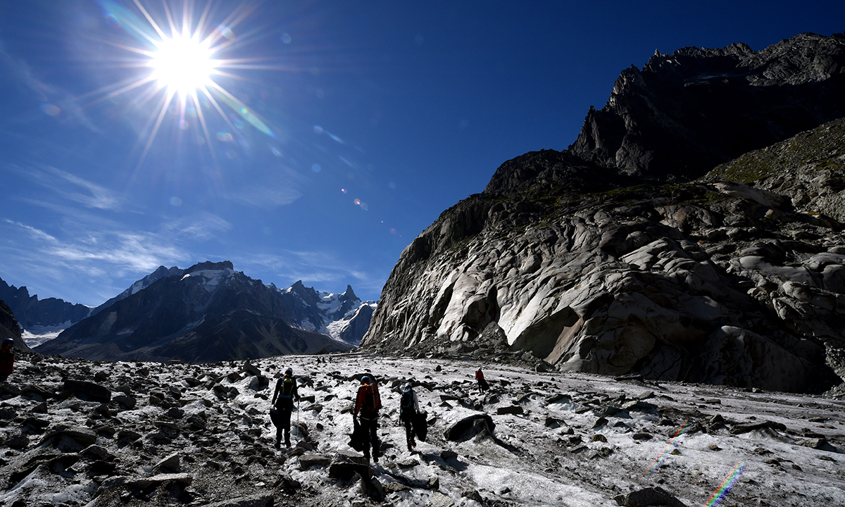 2 settembre 2016. Dei volontari raccolgono i rifiuti sul ghiacciaio Mer de Glace a Chamonix-Mont Blanc, sulle Alpi francesi, durante l’annuale operazione di puliizia che si tiene dopo la stagione estiva.