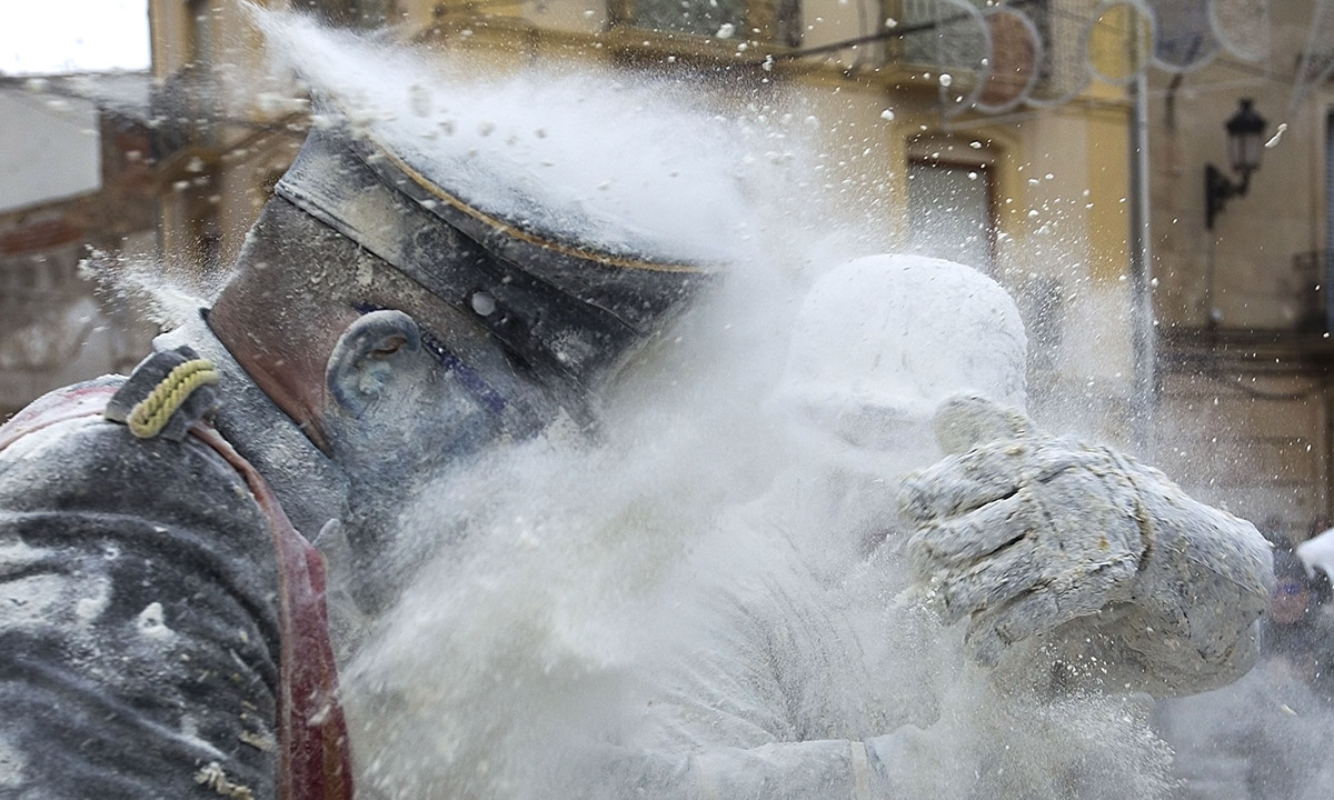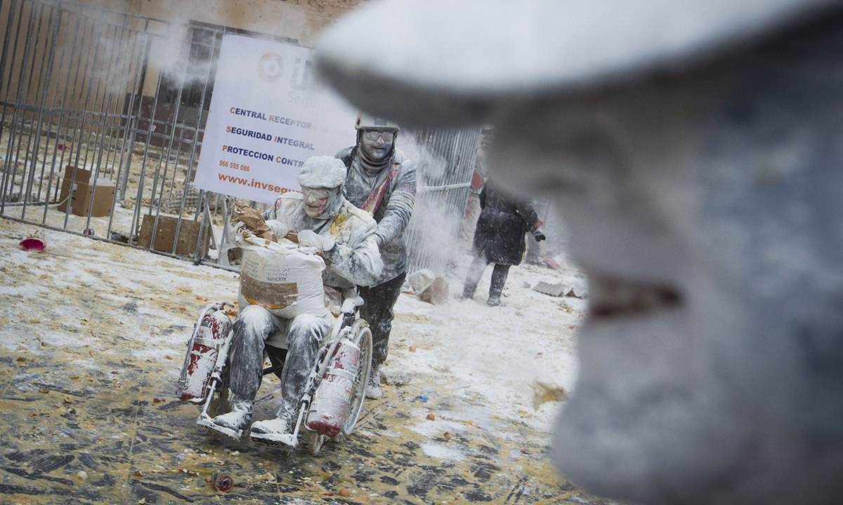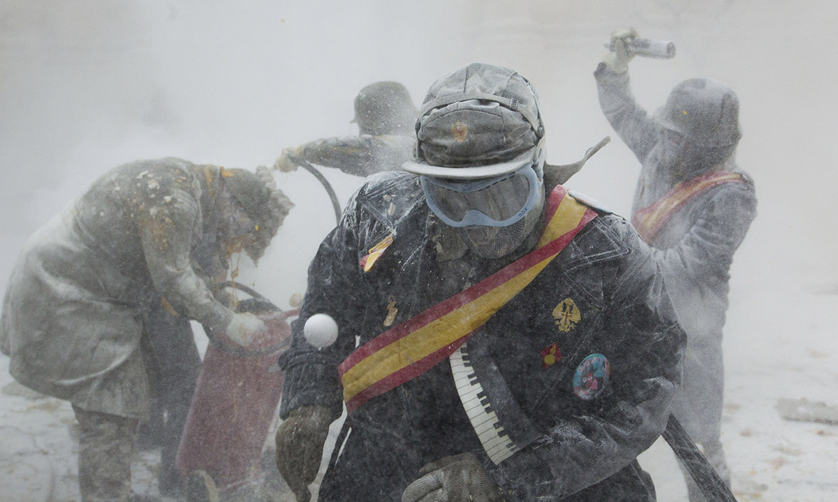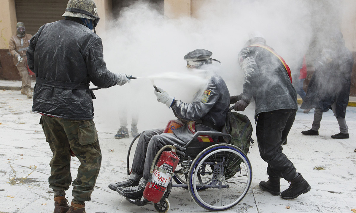 28 dicembre 2016. Un momento della “battaglia degli Enfarinats” nel comune di Ibi, in Spagna.