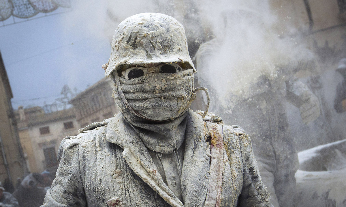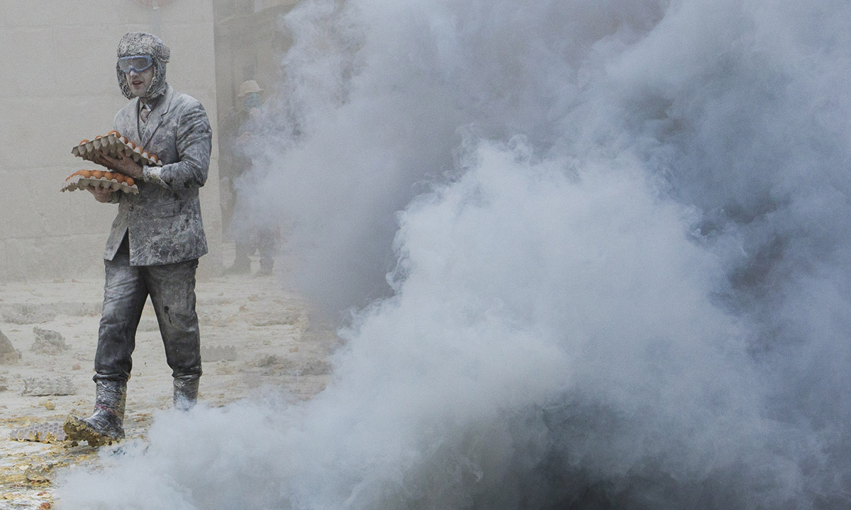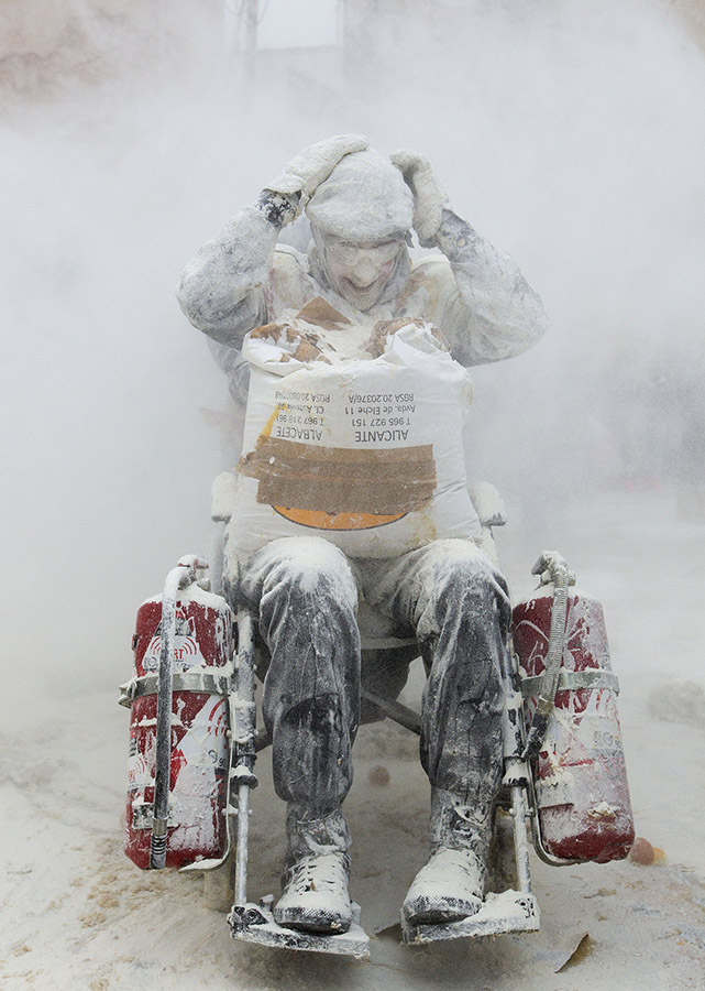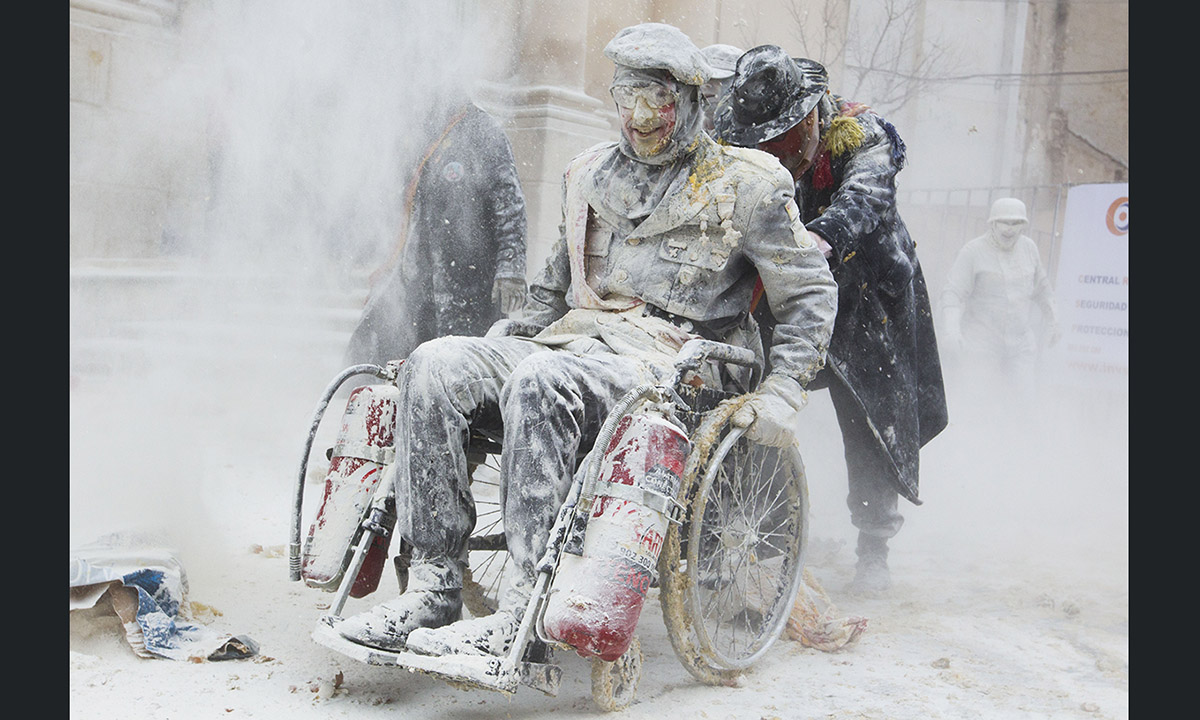 28 dicembre 2016. Un momento della “battaglia degli Enfarinats” nel comune di Ibi, in Spagna.
