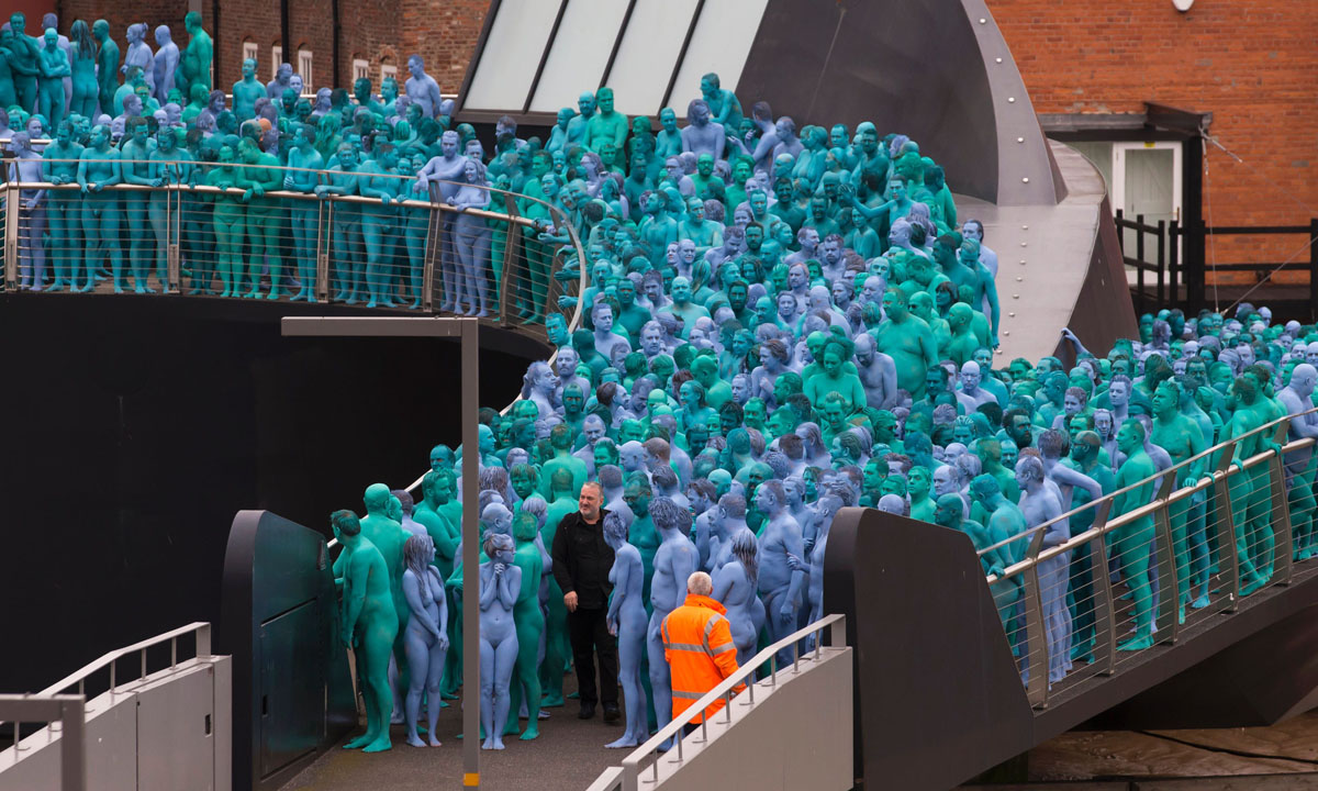 Sono stati oltre 3.200 le donne e gli uomini di ogni età che sabato 9 luglio, nella città portuale di Kingston upon Hull (più nota semplicemente come Hull, il nome del fiume alla cui foce sorge la cittadina), in Inghilterra, hanno risposto all’appello dell’artista newyorkese Spencer Tunick, rendendosi disponibili a posare nudi, con corpi colorati di diverse tinte di blu, per dar vita al suo ultimo progetto, dal titolo Sea of Hull (Il mare di Hull). Un’installazione-spettacolo pensata per celebrare il rapporto con l’acqua della piccola città costiera.