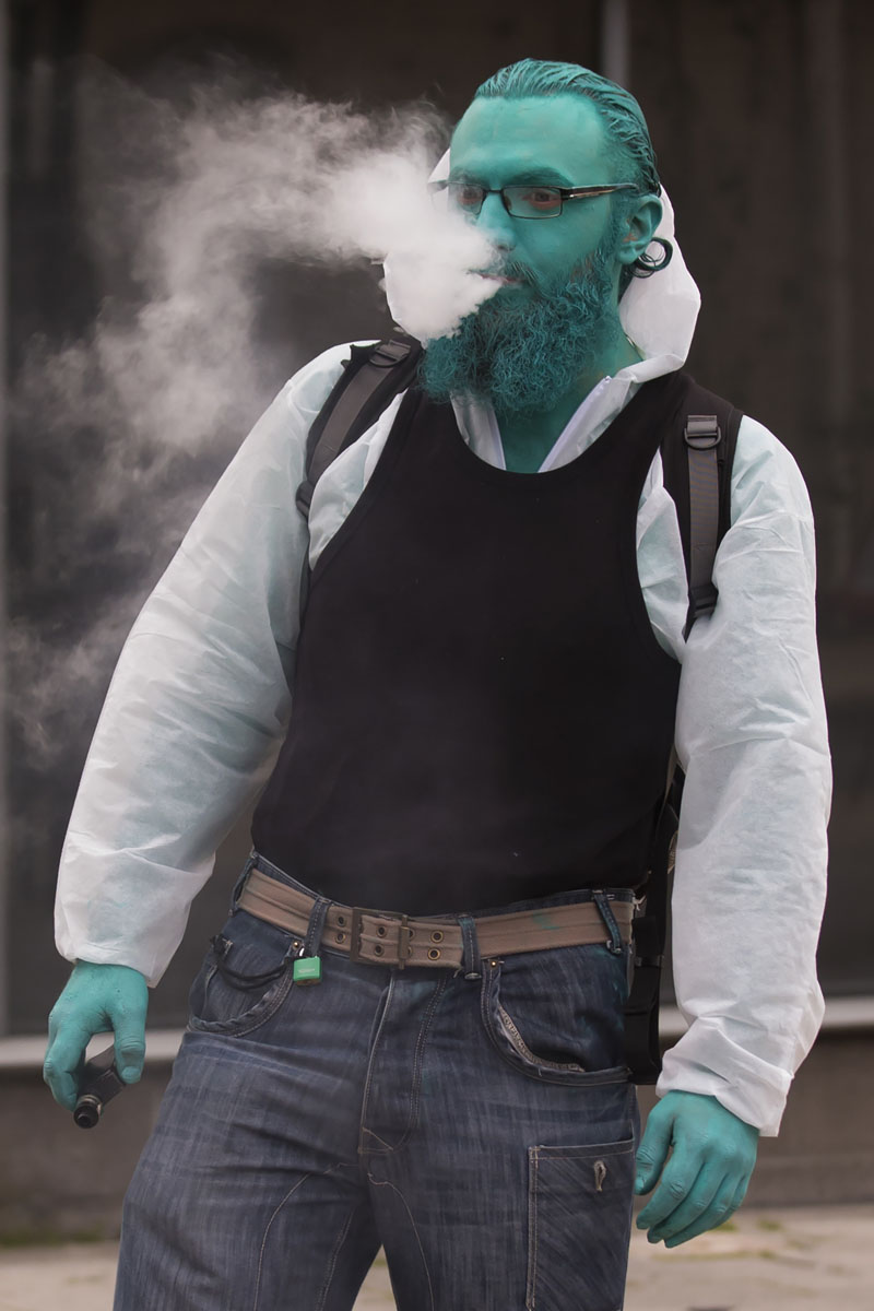 9 luglio 2016. Un uomo fuma una sigaretta dopo aver partecipato, nudo e con il corpo coperto di vernice blu, alla realizzazione dell’ultima creazione dell’artista Spencer Tunick, intitolata “Il mare di Hull”, a Kingston upon Hull, nel Regno Unito.