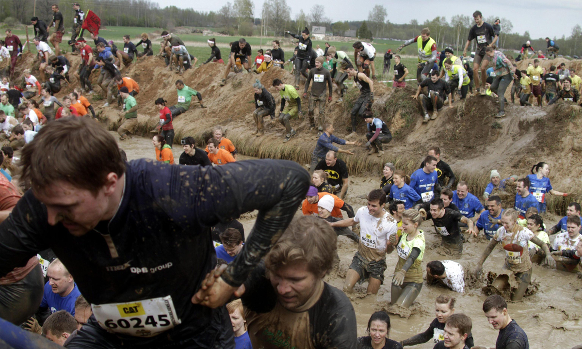 Nel backlot adiacente agli studi cinematografici di Cinevilla, cittadella del cinema che sorge nei pressi del comune di Tukums, in Lettonia, si è svolta ieri la sesta edizione della Strong Race, l’una gara di resistenza di massa organizzata nei Paesi Baltici, inaugurata nel 2010. La corsa a ostacoli nel fango ha messo alla prova centinaia di partecipanti che, armati di energia, grinta e concentrazione, hanno superato intralci naturali e artificiali sguazzando nell’acqua fino al traguardo. Eccoli nelle foto di Valda Kalnina.