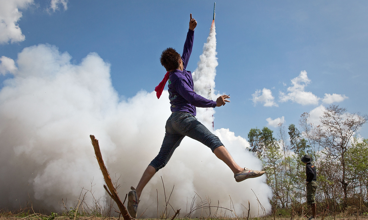 Tra le numerose feste celebrate nel corso dell’anno in Thailandia, scandite dal calendario lunare, nel nord-est del Paese, agli inizi di maggio, la popolazione si celebra Bun Bang Fai, “la festa dei razzi”. Nei campi circostanti i villaggi agricoli, centinaia di razzi costruiti artigianalmente, grandi fino a 10 metri, vengono lanciati verso il cielo per invocare la benedizione delle piogge e scongiurare siccità, inondazioni e parassiti, prima che inizi la semina. Una festa della fertilità e della bella stagione, durante cui i membri delle diverse comunità competono per preparare i razzi più belli e che raggiungono le maggiori altezze. Il fotografo Taylor Weidman ha immortalato la festa dei razzi nella provincia di Yasothon.