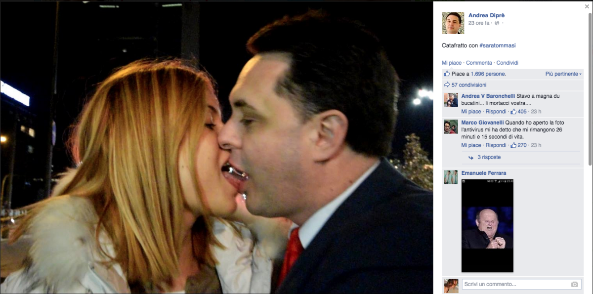 Sara Tommasi si sposa, almeno fino a prova contraria. La soubrette umbra ha annunciato via Facebook di essersi fidanzata con l’avvocato e critico d’arte Andrea Diprè e di essere pronta a fare in grande passo. Certo, a modo suo.