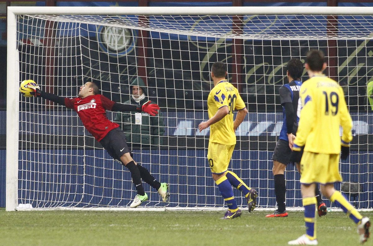 “Io in porta? Ho fatto una grande parata”. Storia di ieri sera. Inter e Verona si giocano a San Siro l’accesso alle gare che contano in Coppa Italia. A meno dieci dalla fine, con i neroazzurri in vantaggio di 2 reti a 0, il portiere titolare Castellazzi è costretto a lasciare il campo per infortunio. Al suo posto, a causa delle tre sostituzioni già effettuate, Stramaccioni è costretto a promuovere Rodrigo Palacio, di professione bomber. Dieci minuti e due interventi super. L’argentino firma due parate da grandissimo e a fine partita si riconosce i meriti dell’impresa.