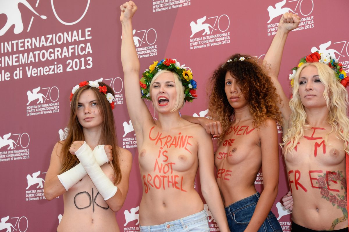 Stamattina è stato proiettato un documentario su di loro, l’Ucraina non è un bordello. Ed eccole pronte a dimostrarlo, una più figa dell’altra, seni al vento, capezzoli turgidi, una folla di maschi in delirio che puntano i loro teleobiettivi su di loro, facendo partire un coro di “bacio bacio” quando un paio di vichinghe decidono che è venuto il momento di abbracciarsi e (giuro) anche un piccolo e soffocato ollelé ollallà.