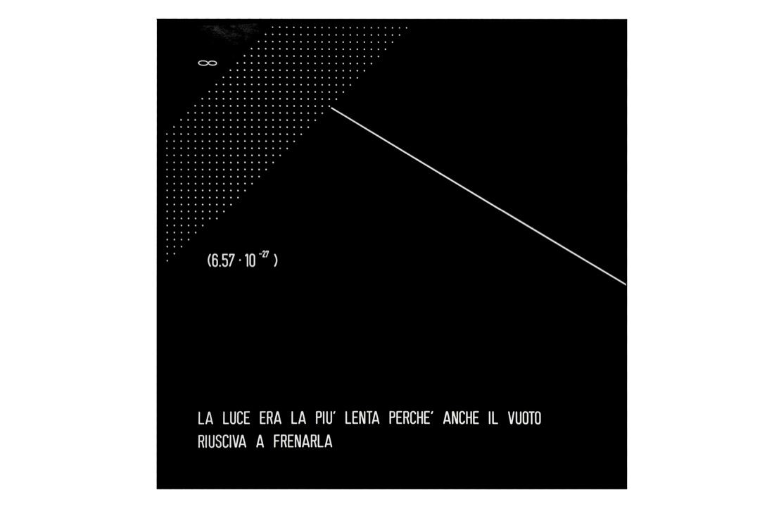 Vincenzo Agnetti, Assioma, La luce era la più lenta perchè anche il vuoto riusciva a frenarla, 1971 (80 x 80 cm)