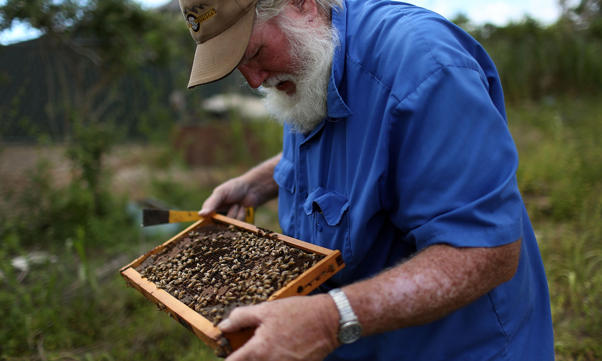 Il fotografo Joe Raedle ci racconta con queste sue immagini il lavoro quotidiano all’interno di una piccola azienda di apicoltori a Homestead, in Florida. Tra arnie, favi e miele, vediamo al lavoro il proprietario, John Gentzel, insieme alla figlia Kimberly e al collega Steve Corniffe.