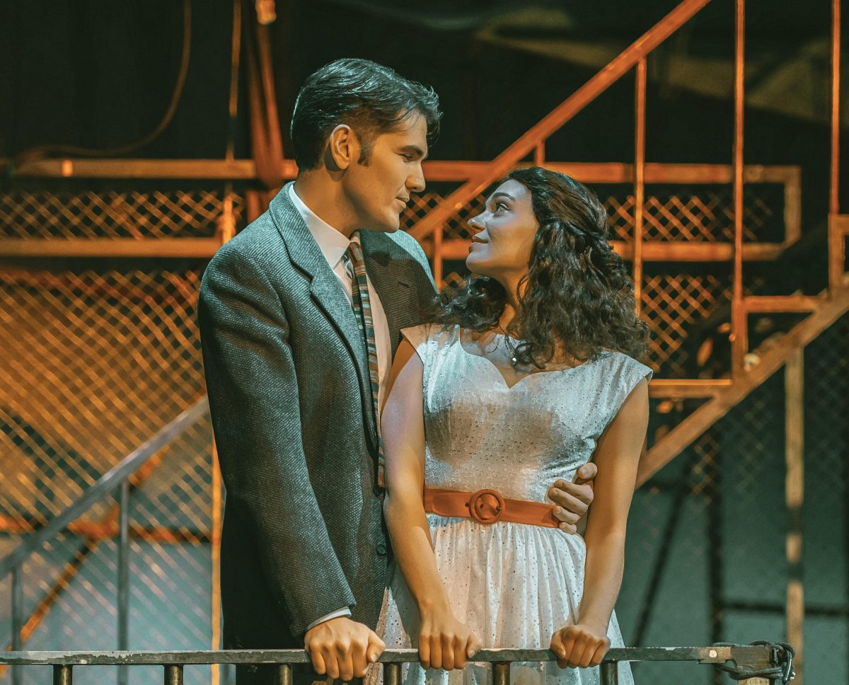 «I temi sono molto attuali e confermano quanto il tema dell’immigrazione abbia attraversato il mondo intero e ogni epoca moderna. Al centro della vicenda lo scontro tra americani e portoricani: tema che è stato al centro anche dell’ultima campagna per l’elezione del Presidente degli Stati Uniti». La colonna sonora di Bernstein viene esaltata dall’esecuzione dal vivo delle partiture originali da parte dell’orchestra di diciotto elementi (tra buca e palco) diretta con brio dal Maestro Emanuele Friello, che accompagna le vicende tra le bande rivali degli americani Jets contro i portoricani Sharks. Ne La canzone dei Jets è evidente propulsione ritmica stravinskijana, l’incalzante America alterna abilmente ritmi binari e ternari, mentre la continuità con la tradizione colta occidentale di Bernstein si palesa nella fuga atonale di Cool e nel quintetto di Tonight (Assieme), che riprende il famosissimo tema della Scena del balcone in contrappunto con le voci dei componenti delle bande rivali e con quella di Anita, fidanzata del capo degli Sharks Bernardo. West Side Story è in primis una grande storia d’amore, apertamente ispirata Romeo e Giulietta, la tragedia di William Shakespeare. I protagonisti sono Tony e Maria, due giovani dell’Upper West Side di New York che si innamorano nonostante appartengano a due bande rivali, che si dividono il territorio della città. Da una parte troviamo i bianchi americani Jets di Tony e, dall’altra, i portoricani Sharks di Maria. Una storia d’amore “mista”, tra due appartenenti alle opposte fazioni, non potrebbe mai essere accettata. Maria e Tony, pur consapevoli delle difficoltà, sperano comunque in un romantico futuro insieme. La situazione precipita, a causa di una rissa, che Tony vorrebbe placare. Il ragazzo, però, quando vede Bernardo, il fratello di Maria che comanda gli Sharks, pugnalare a morte Riff, capo dei Jets e suo migliore amico, accecato dal dolore, uccide a sua volta Bernardo. Gli Sharks, che si ritrovano senza leader, vogliono vendetta, così Tony e Maria fuggono insieme.
